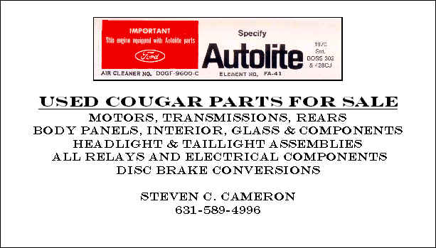 Wanted: Any clean moldings for 1969, eyebrow, hood, trunk, backup housings, etc. Any Ram air components, Cougar toys.