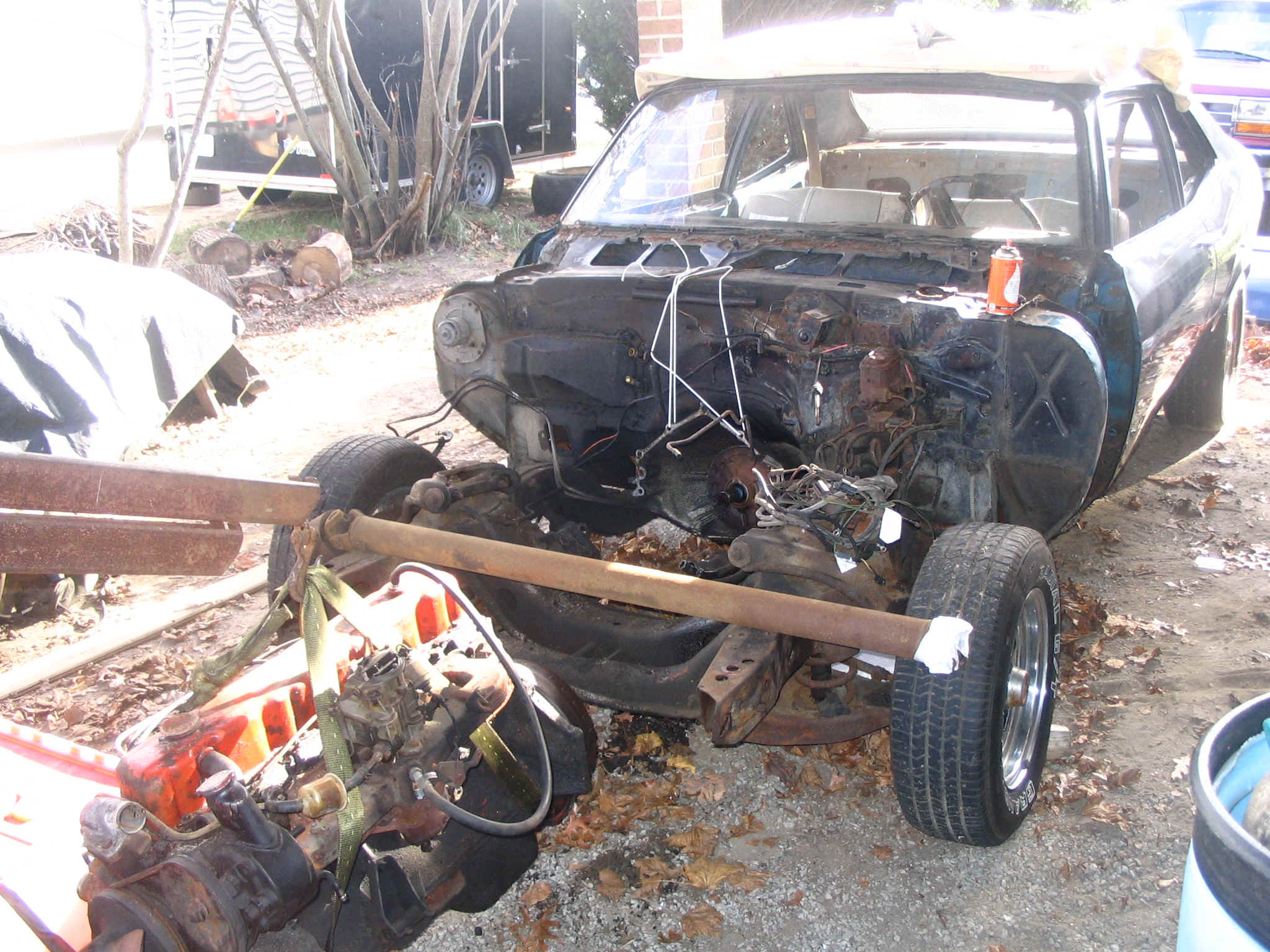 After decoding the data plate on the car, we find out that it is originally an eight cylinder car. Someone put a six cylinder in it, probably during the gas crunch of the 70's. That was the determining factor, the six needs to go.