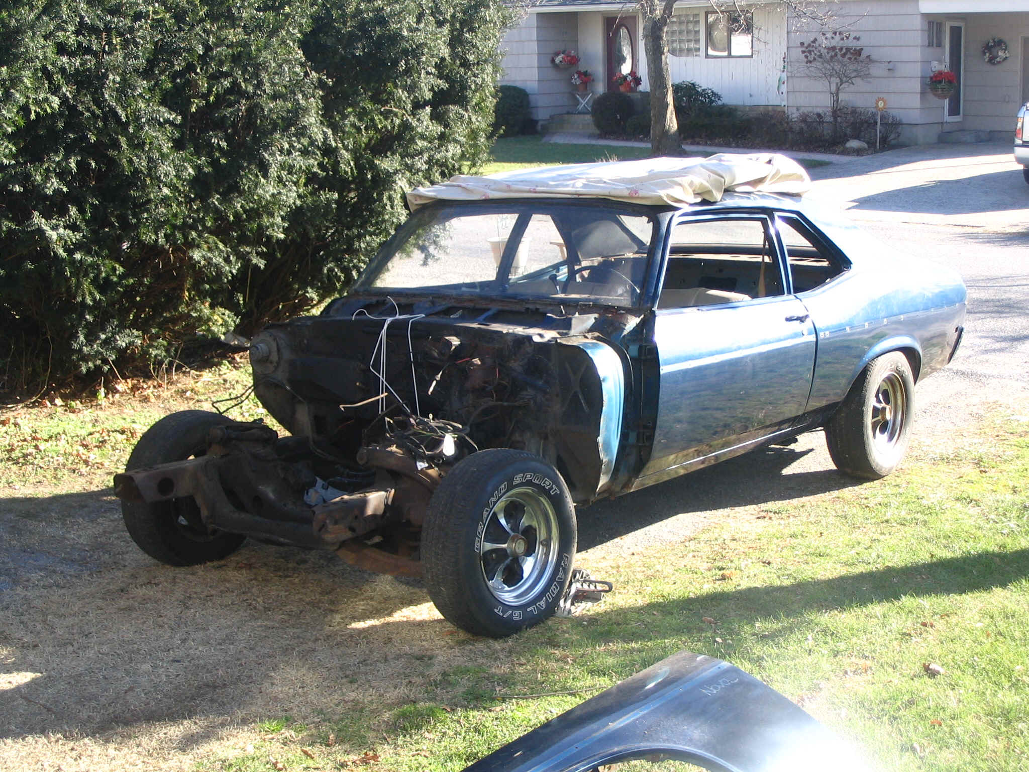 This is the beginning of a 1969 Nova Restoration. This car is owned by Michael Cook of Patchogue New York. Michael is a eighteen year old young man with a interest in Classic Cars. The car is in very good exterior condition. However, the floor pans need to be replaced.